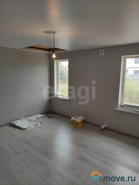 Просторная кухня-гостиная (25 кв. м.) и две изолированные комнаты (по 14 кв.м.) имеют правильную форму. Большие окна (пластиковое остекление) наполняют дом естественным светом. Санузел совмещенный, установлен унитаз и раковина.