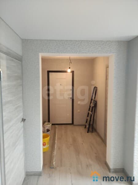 На стенах обои нейтральных оттенков. Пол имеет хорошее утепление, уложен ламинат.