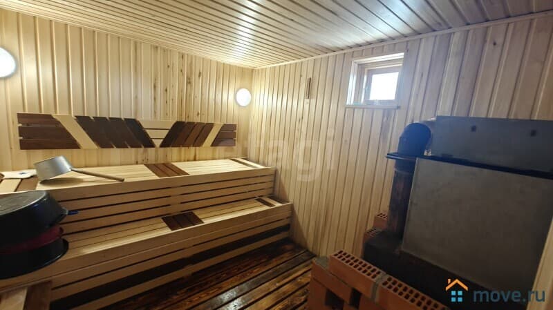 Дом построен на монолитной плите из керамзитоблока, отапливается электрическим котлом. 13м? баня обшита вагонкой.