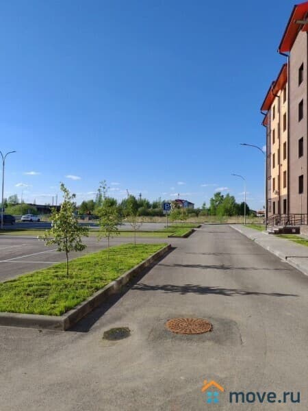Территория благоустроина: архитектурная подсветка фасада, озеленение придомовой территории, установлена спортивная площадка, зона выгула собак и большая автомобильная парковка.