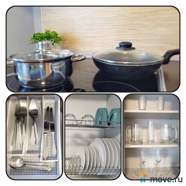- На кухне имеется вся необходимая посуда для приготовления и принятия пищи; СВЧ-печь, эл.плита с духовкой, холодильник, электрочайник. посудомоечная машина.