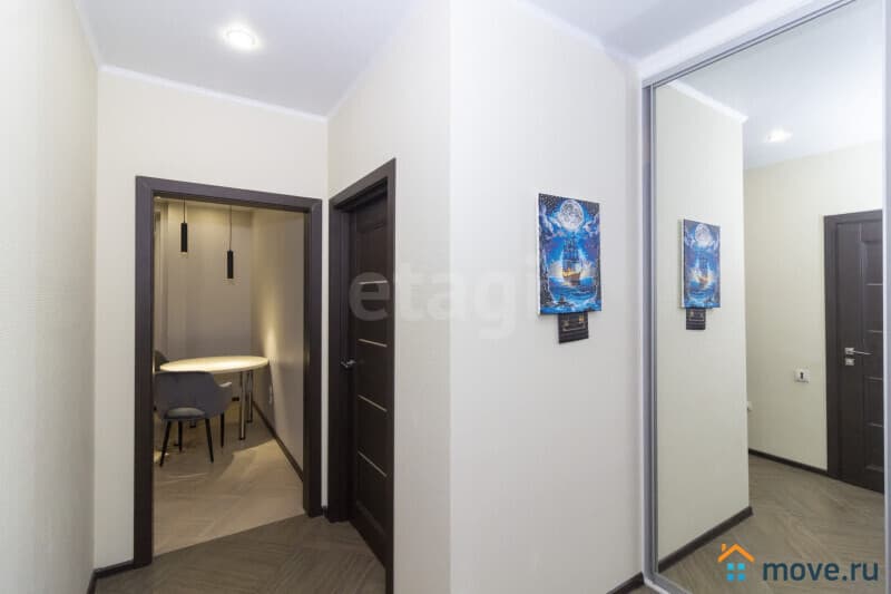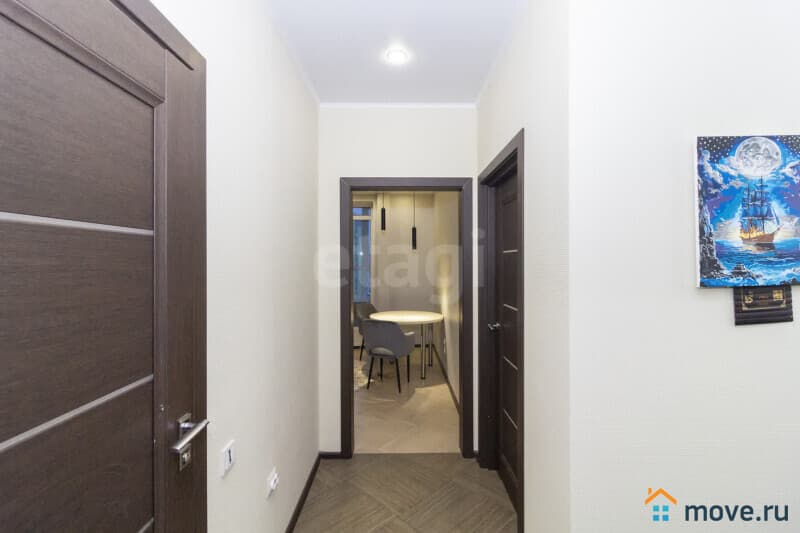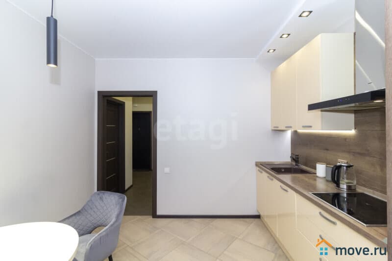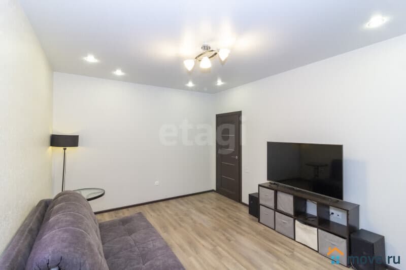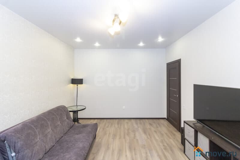 Квартира оформлена в современном стиле с использованием высококачественных материалов, что создаёт атмосферу уюта и стиля. На стенах современные обои, на полу в комнате кварцвинил, плитка в кухне, ванной и коридоре (система теплого пола), установлены межкомнатные двери, потолки натяжные матовые. Застекленная лоджия добавляет дополнительное пространство и свет, а совмещенный санузел с полноценной ванной и местом для стиральной машины обеспечивает максимальное удобство.