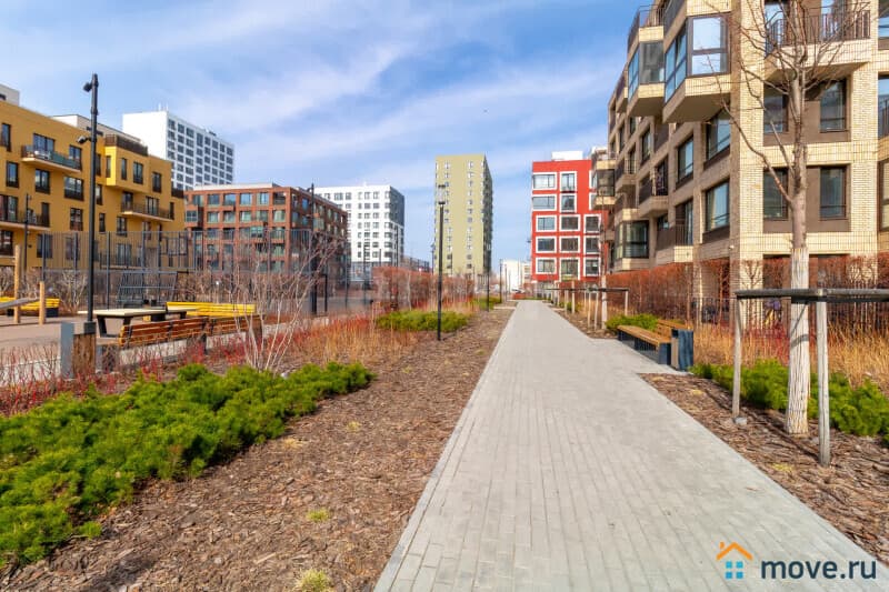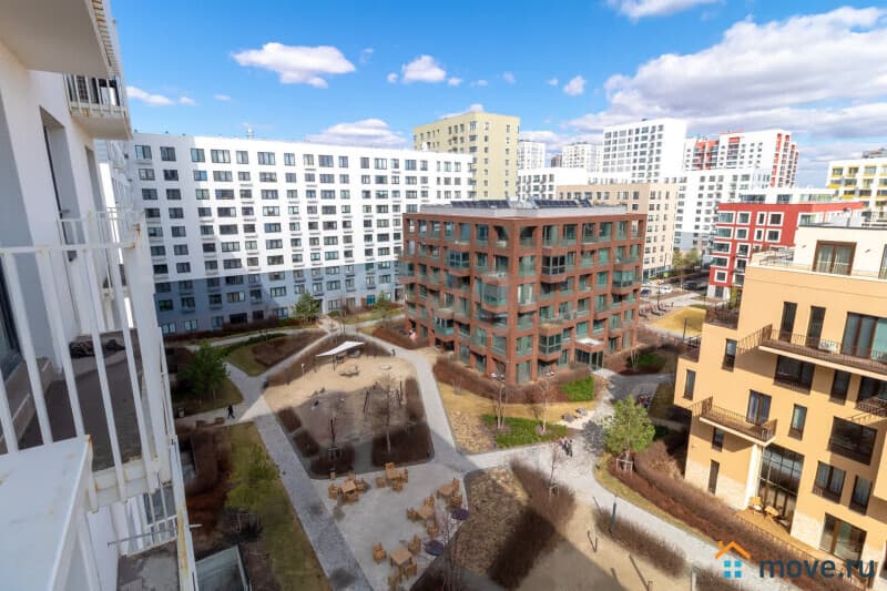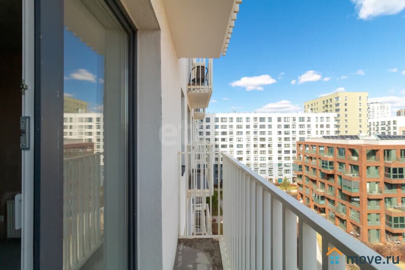 При входе глубокая ниша под гардероб, хорошая просторная комната с двумя окнами и выходом на французский балкон. Окна выходят во двор. Ща счёт того, что квартира находится на 8 этаже, а напротив окон Урбан виллы в 5 этажей, квартира очень светлая и свободная от посторонних глаз.