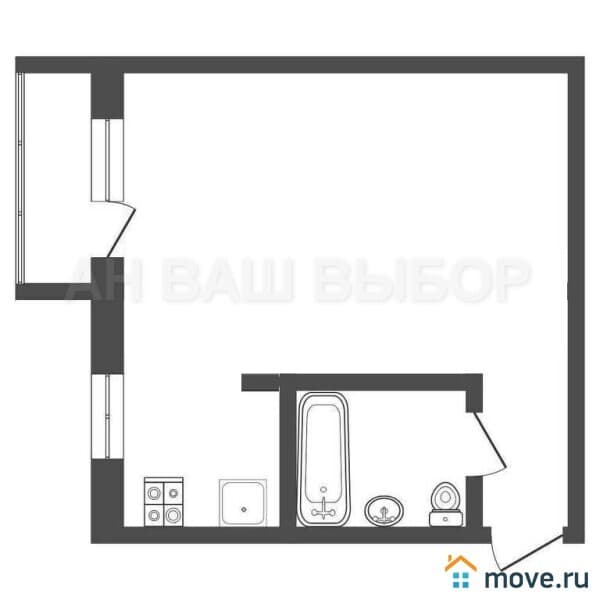 Общая площадь - 29,6 м2.