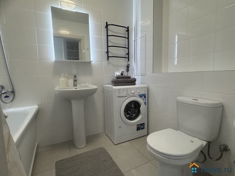 - Вам не придётся беспокоиться о бытовых нуждах - в квартире есть утюг, гладильная доска, стиральная машина и сушилка для белья.