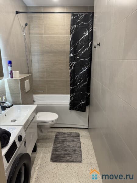 - Вам не придётся беспокоиться о бытовых нуждах - в квартире есть утюг, гладильная доска, стиральная машина и сушилка для белья.