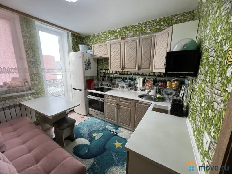 При продаже остаётся кухонный гарнитур, плита, диван в комнате и прихожая.
