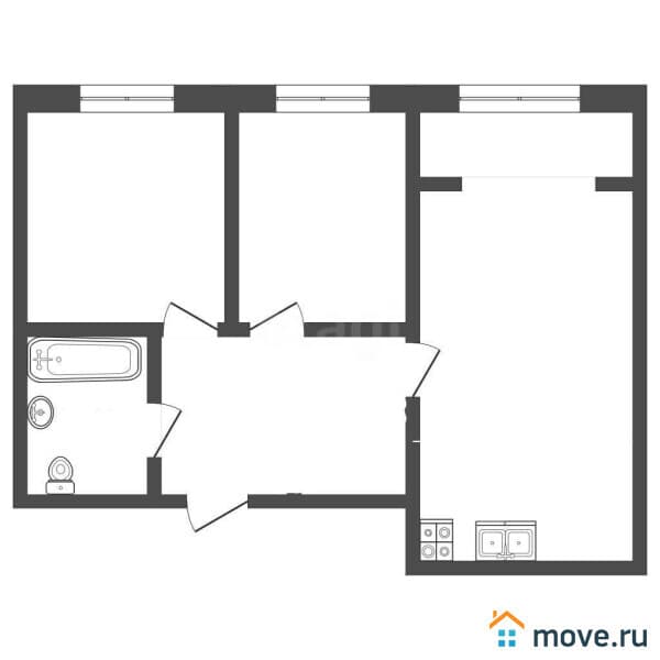 Жилище включает в себя две комнаты и просторную кухню площадью 20 квадратных метров, где с лёгкостью разместится столовая зона и место для приготовления пищи. Квартира ожидает своего нового владельца, который вдохнёт в неё жизнь с помощью индивидуального ремонта. Санузел в квартире совмещённый, что является удобным решением для современного жилья.