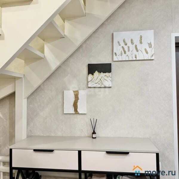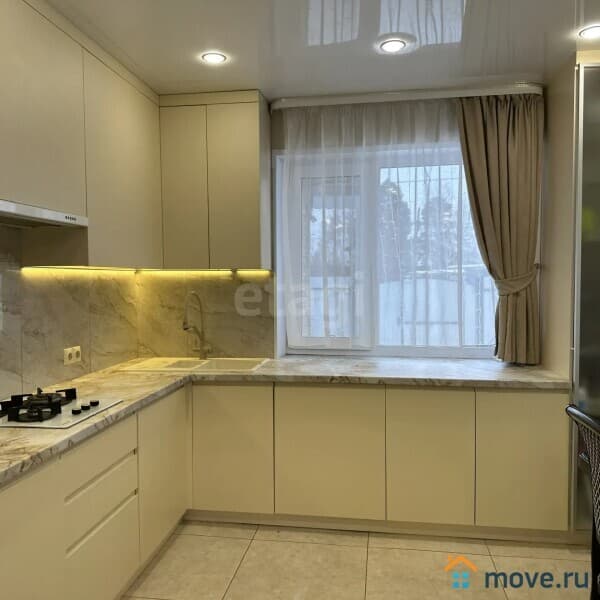 Дизайнерские прихожая и кухонный гарнитур с окрашенными фасадами и бытовой техникой остаются в подарок покупателю (холодильник двухдверный, плита газовая, духовой шкаф, микроволновая печь, вытяжка и посудомоечная машина).